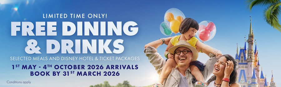 Alongside Free Dining & Drinks, stay in the magic and enjoy a range of exclusive benefits as a Disney Hotel Guest: