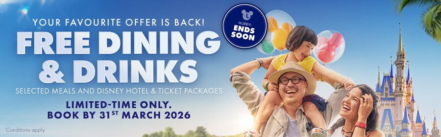 Besides benefitting from FREE Dining & Drinks when you add any 4-day+ Park Hopper Ticket option to your booking, you’ll also enjoy ultimate flexibility to explore multiple Parks and experience more attractions, dining, and entertainment for an unforgettable holiday.